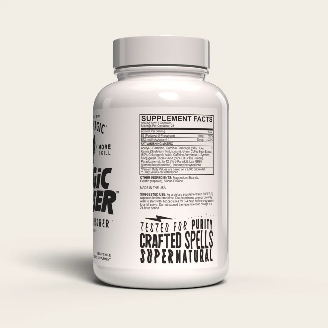 A potent multi-stage thermogenic fat burner designed to make fat vanish while providing clean energy, focus, and endurance. This hard-hitting formula assists in burning body fat while fueling your most rigorous cardio sessions. Loaded with ingredients like Acetyl-L-Carnitine, Garcinia Cambogia, Paradoxine, and LeanGBB to increase thermogenesis, suppress appetite, and enhance mood. Whether you're in a caloric deficit or cutting weight, Magic Eraser keeps you on track for your best physique.