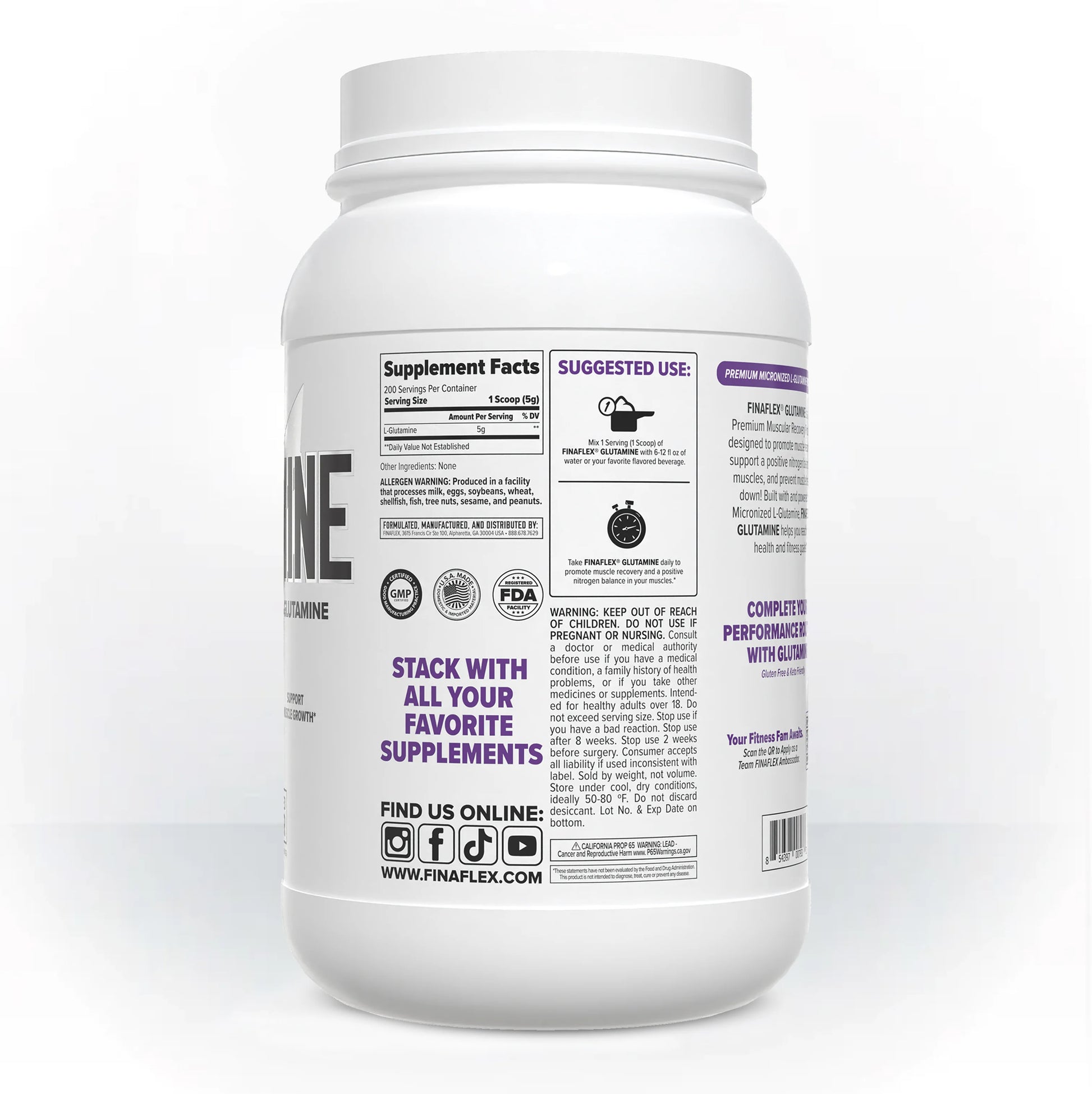 Pure L-Glutamine powder to support muscle recovery, immune function, and gut health. Glutamine is the most abundant amino acid in muscle tissue and becomes depleted during intense exercise. Supplementing helps maintain muscle integrity, supports immune system function, and promotes intestinal health. Unflavored for versatile mixing.